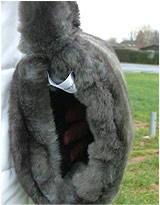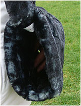 aus Kunstfell, mit Innenfach, sorgfältig in Handarbeit gefertigt
