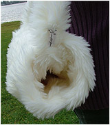 aus Kunstfell, ohne Innenfach, sorgfältig in Handarbeit gefertigt